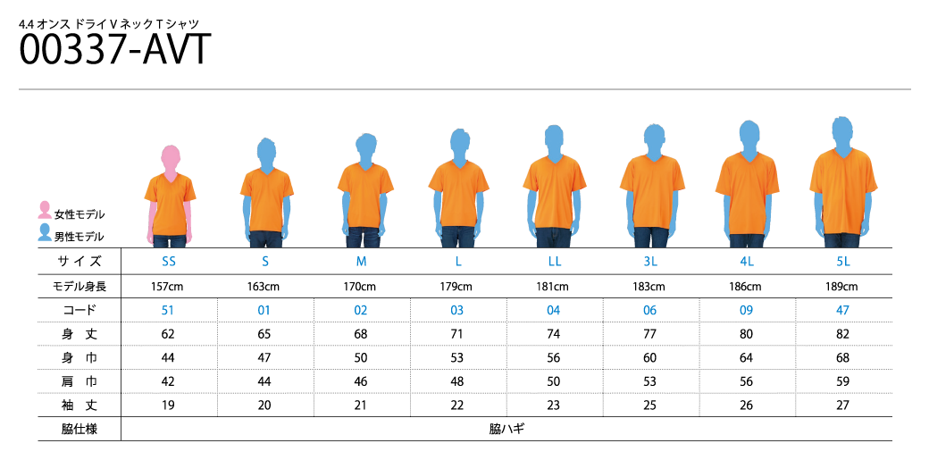 料金表(インクジェット白引きなし) 00337-AVT:4.4オンス AVT ドライVネックTシャツ