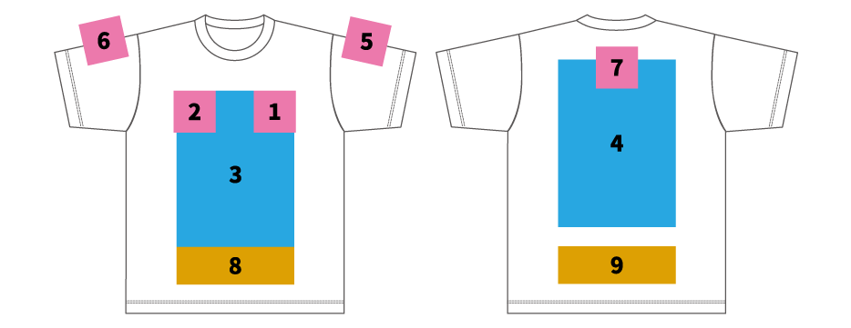 プリント箇所や柄サイズを決める際にご利用ください。